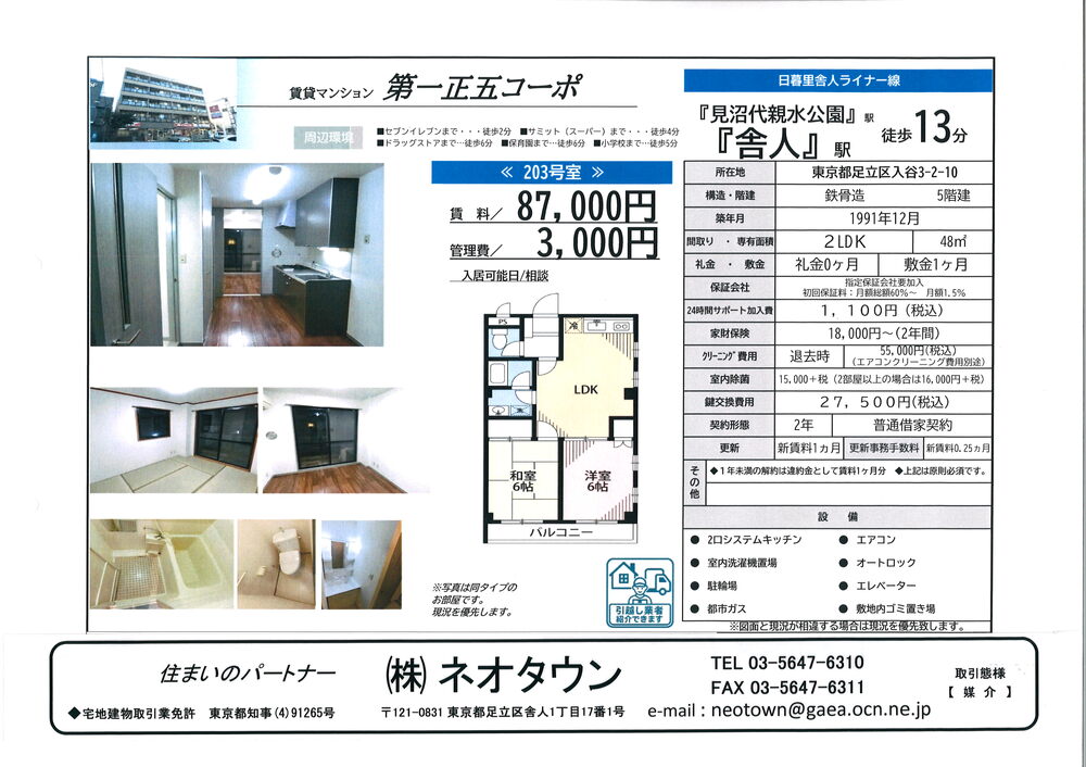 87,000円 利用駅:舎人駅 徒歩13分