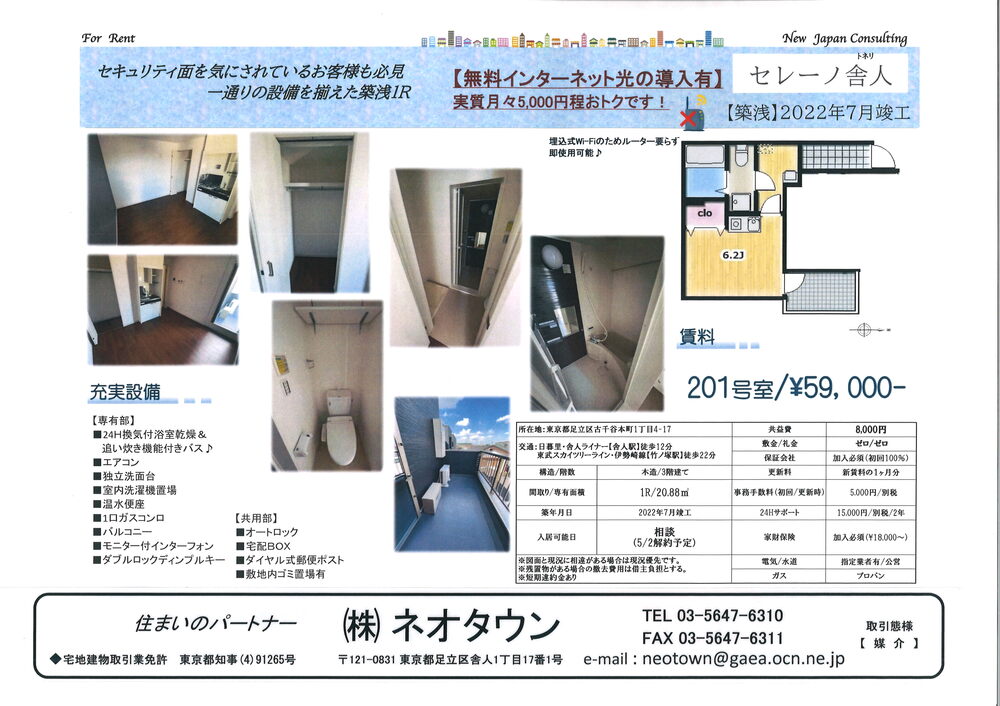 58,000円 利用駅:舎人駅 徒歩12分